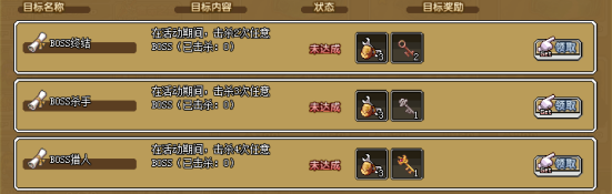 3、击杀任意BOSS4次,可获得:神力矿工包×3,烈焰金钥匙×1