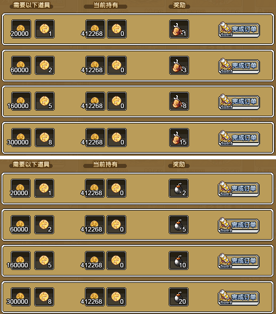20、凑齐金币500000和8个冒险徽章,即可用来兑换:雷管×45