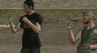 可以单人或双打的超爽小游戏,目的就是通过练习武功击败10个不同级别的对手,你将利用组合技击败他们 操作指南: 1P:A S W D为上下左右控制,T为击打对手,Y为踢腿,U键为拿武器 2P:方向键为上下左右控制,4,5,6分别对应左方的技能 组合技:跳=向上+左/右 挡=下 长击=T+向前键 双击=T+向下键 特殊技能=T+Y(必须等屏幕上方的能量槽蓄满才可使用) 狠踢=Y+后键